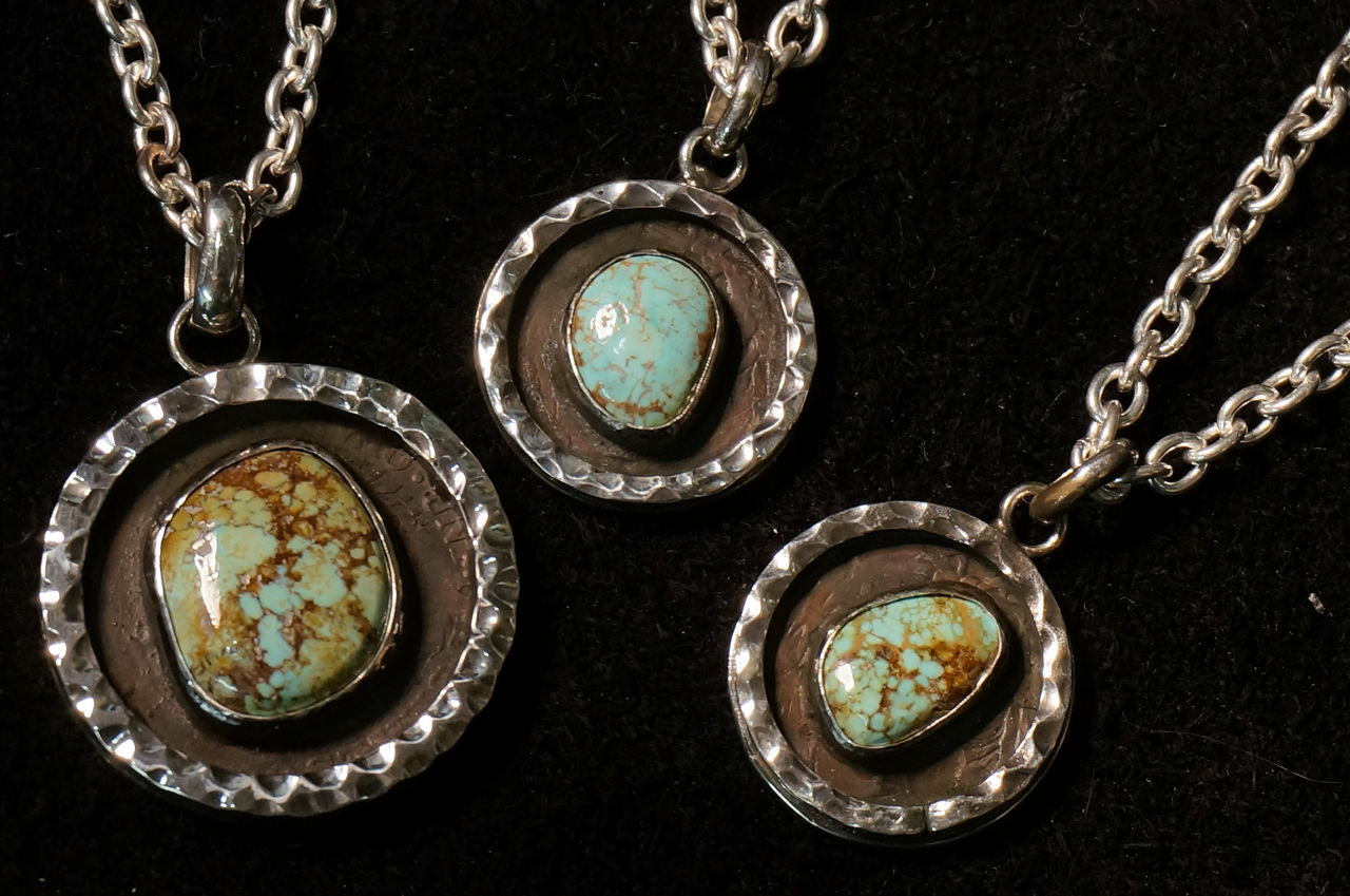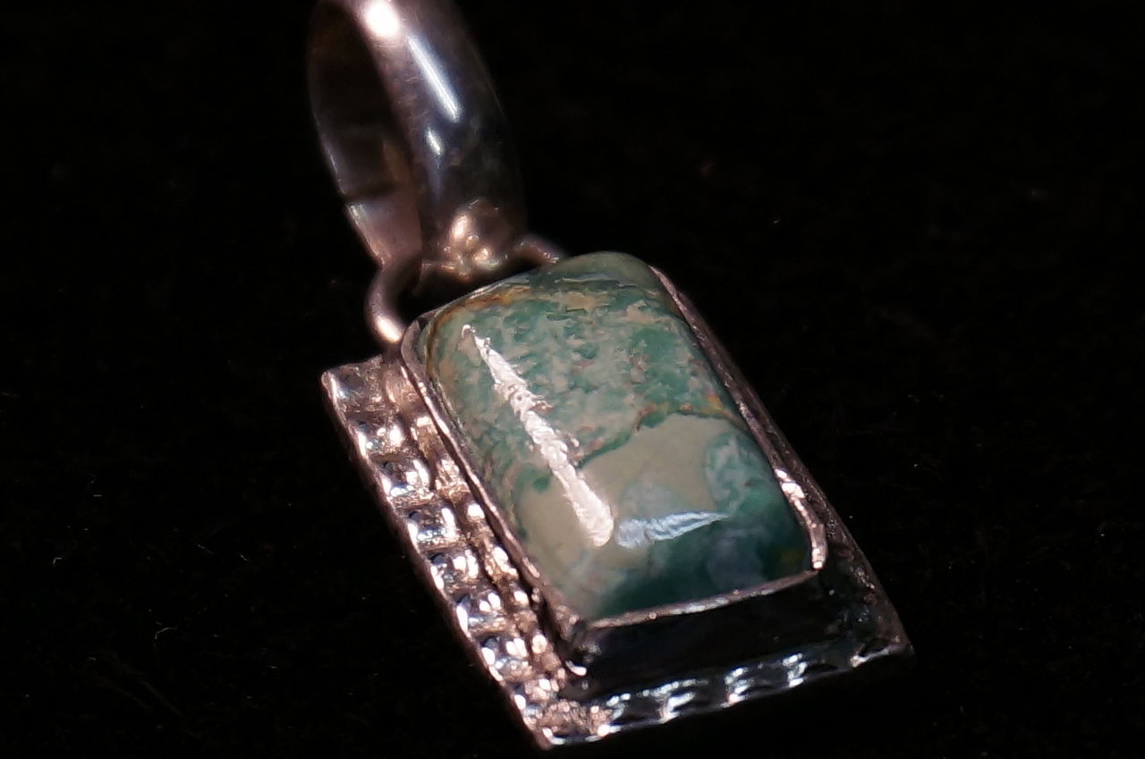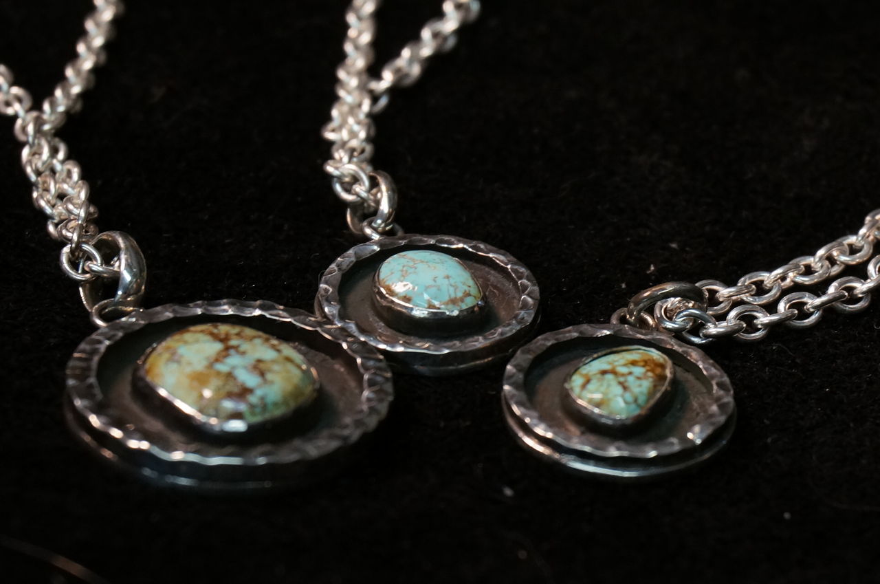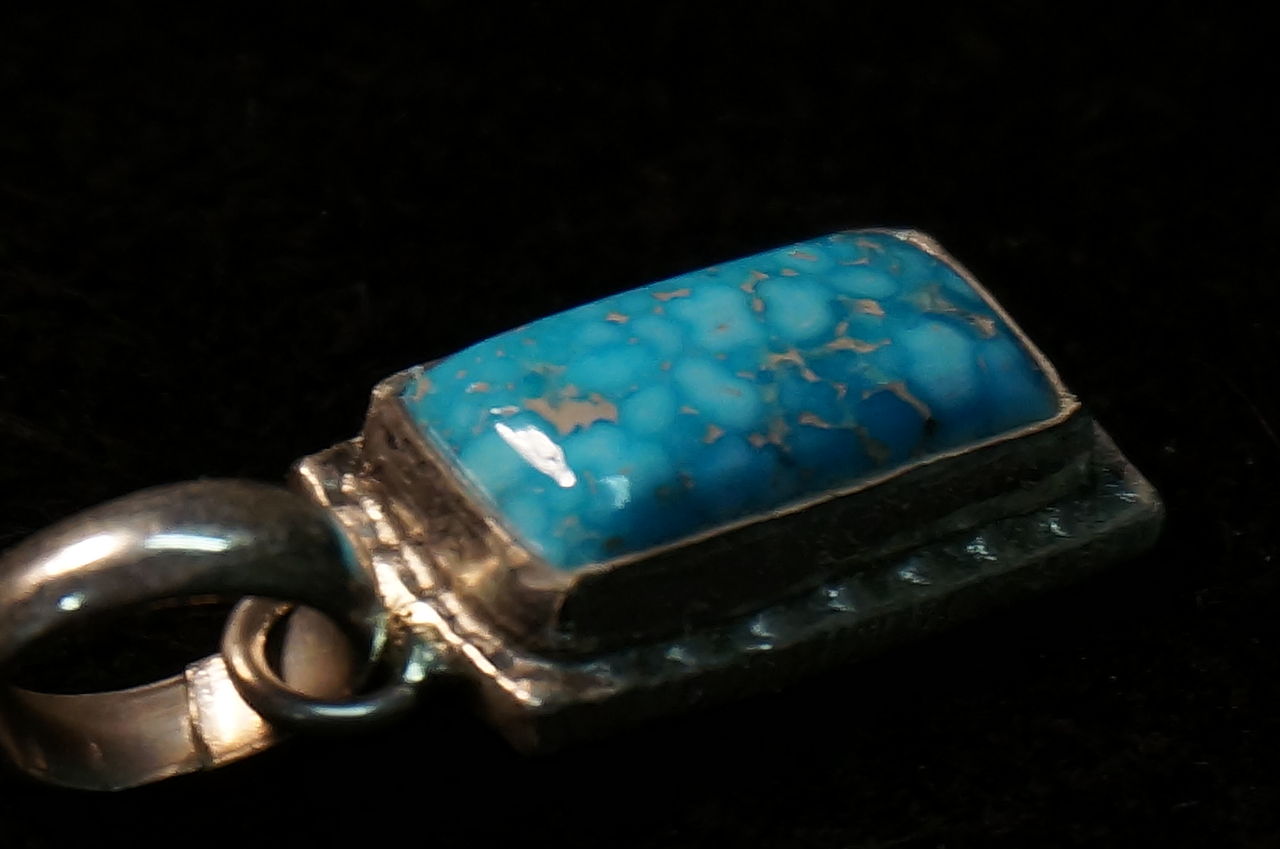 握っているのは、ナチュラルターコイズの原石をナゲットのまま磨いたもの・・・