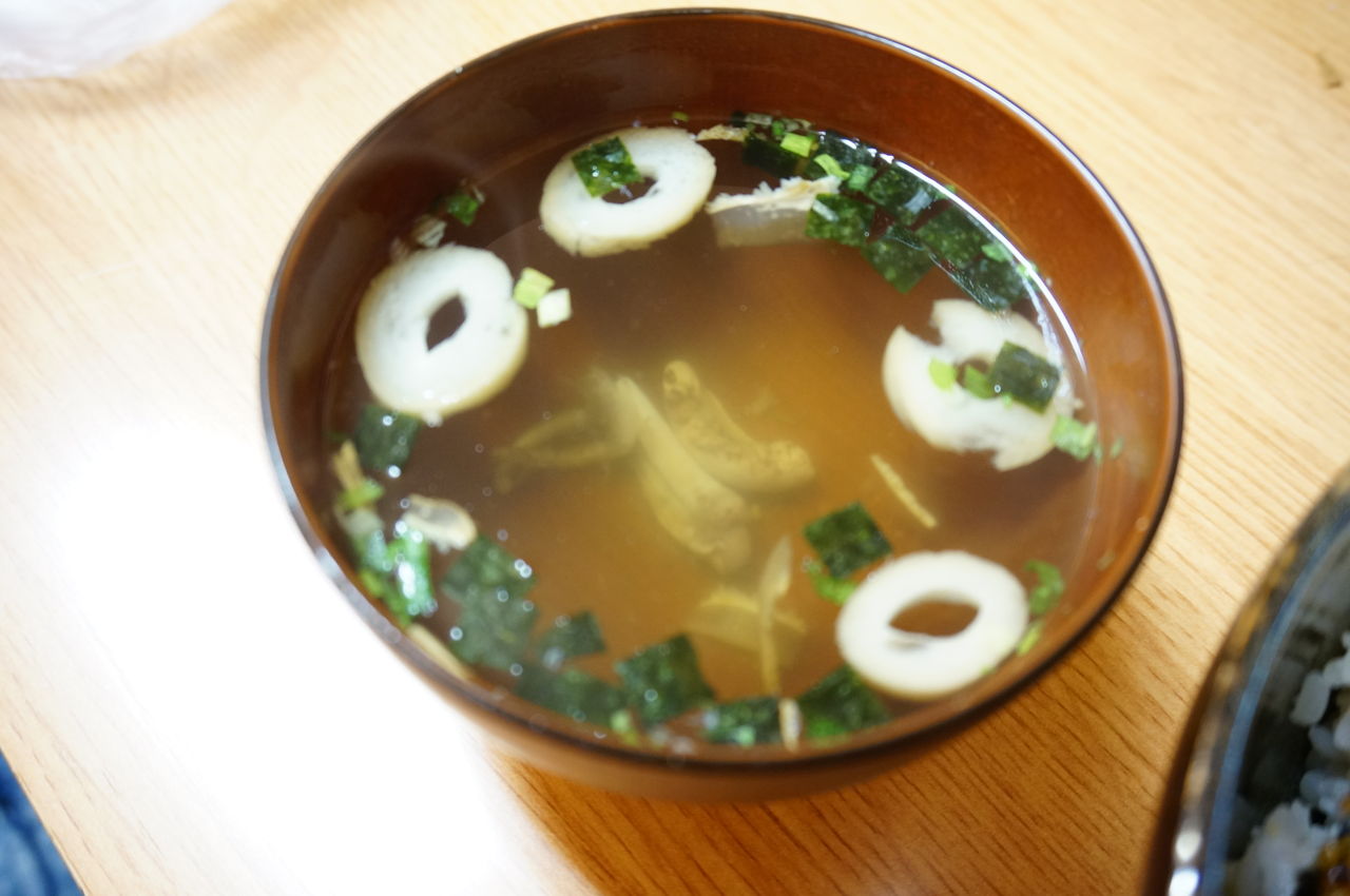 (お吸い物はお馴染み、永谷園のマツタケのお吸い物)