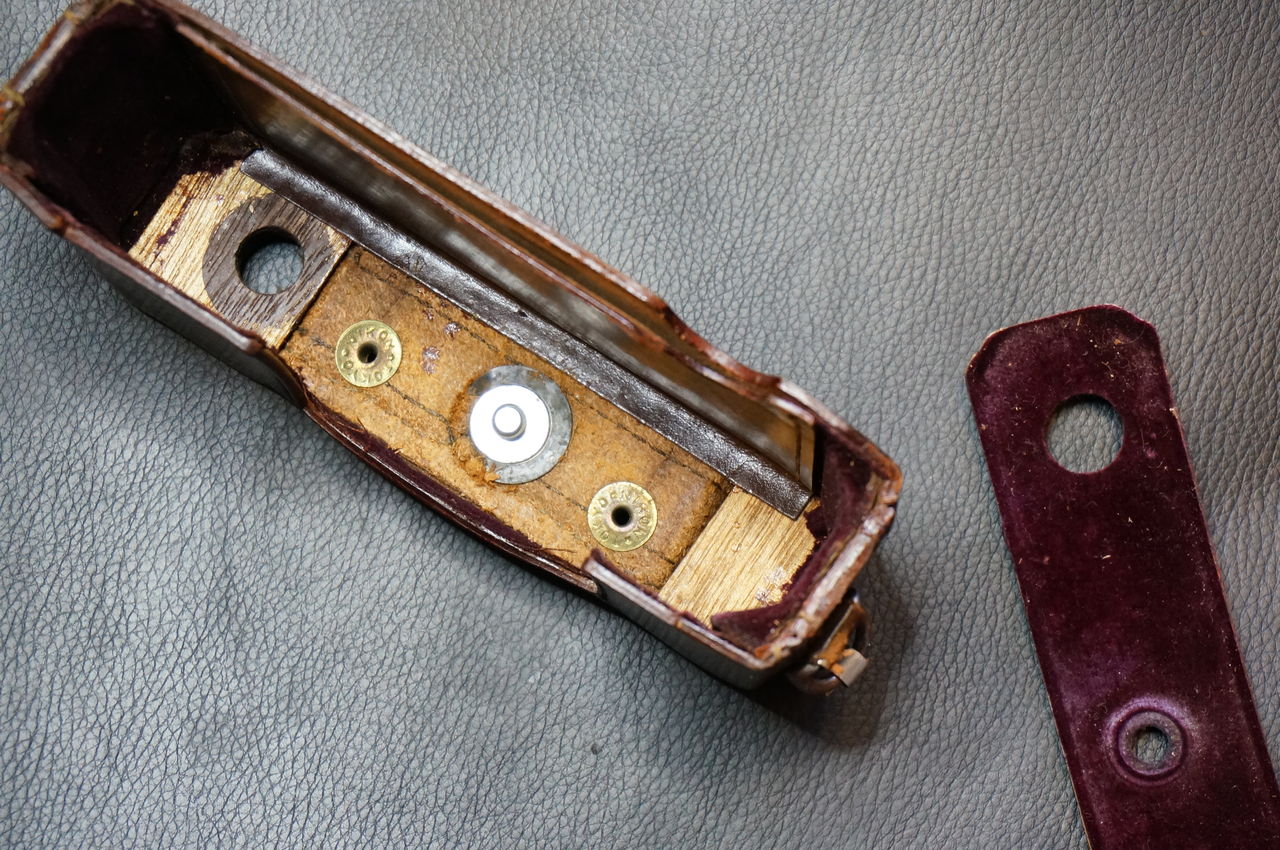 今回は、ストラップの交換とレンズカバー下部の革が完全に切れてる部分の補修。