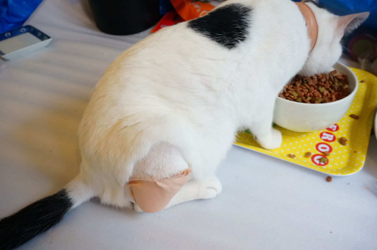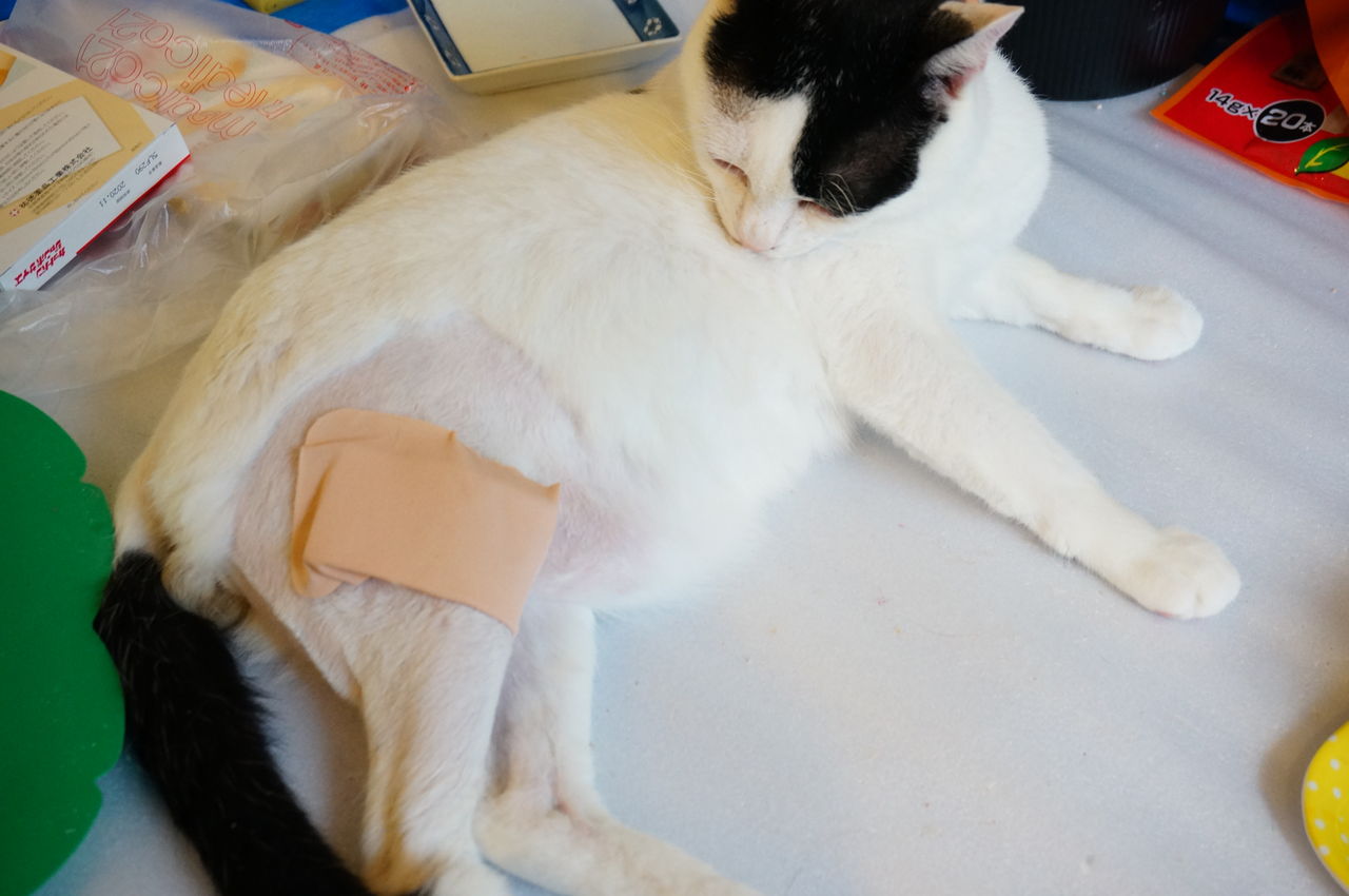 縫合してる傷口を器用に舐めて、勝手に抜糸しやがる・・・