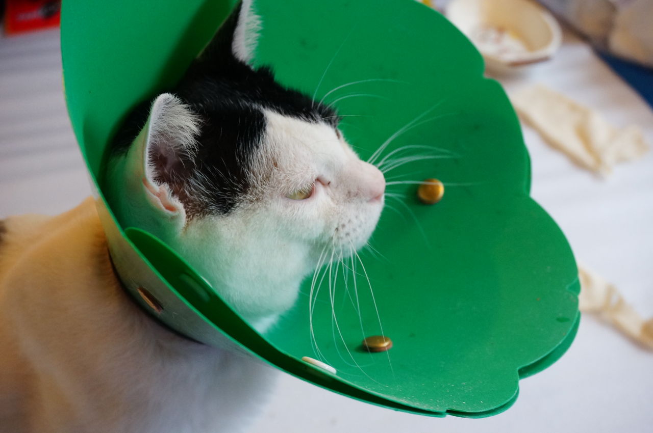 そこで、獣医とも相談し、首輪を着けて、更にラッパをはめれば、