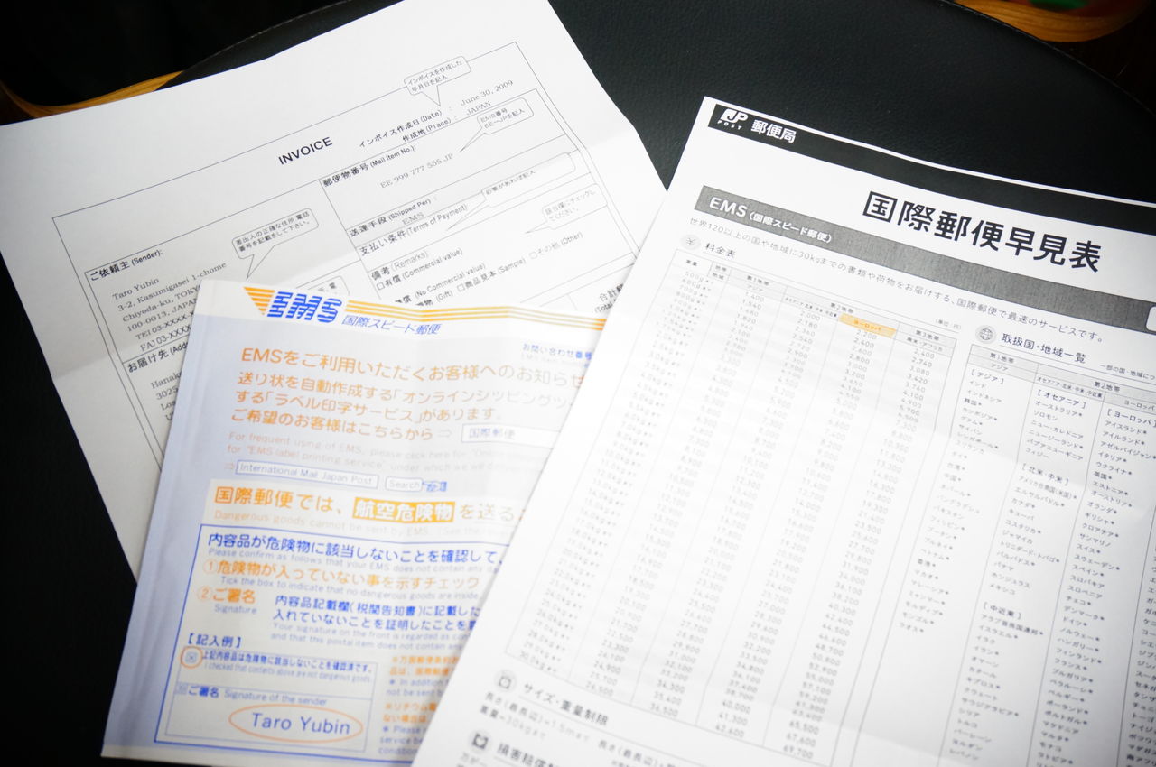 発送はEMS(国際スピード郵便)ならヨーロッパまで2200円で済みそうだ・・とか