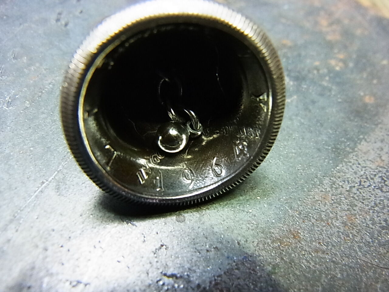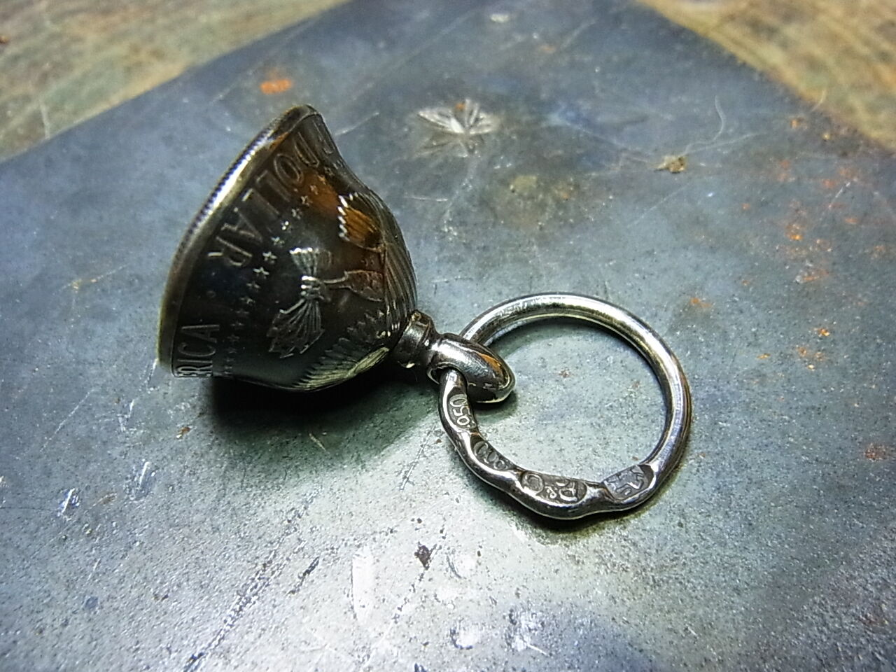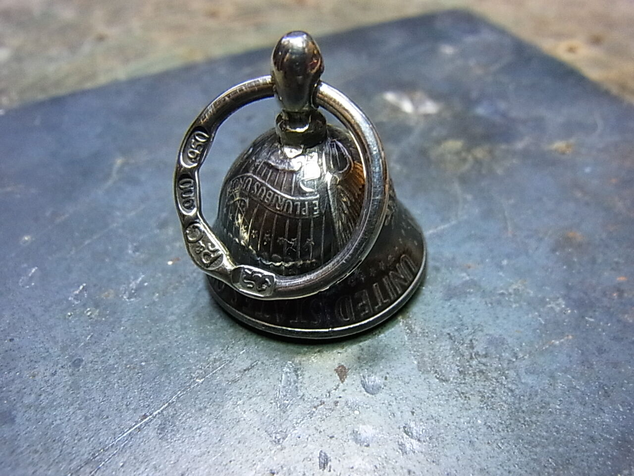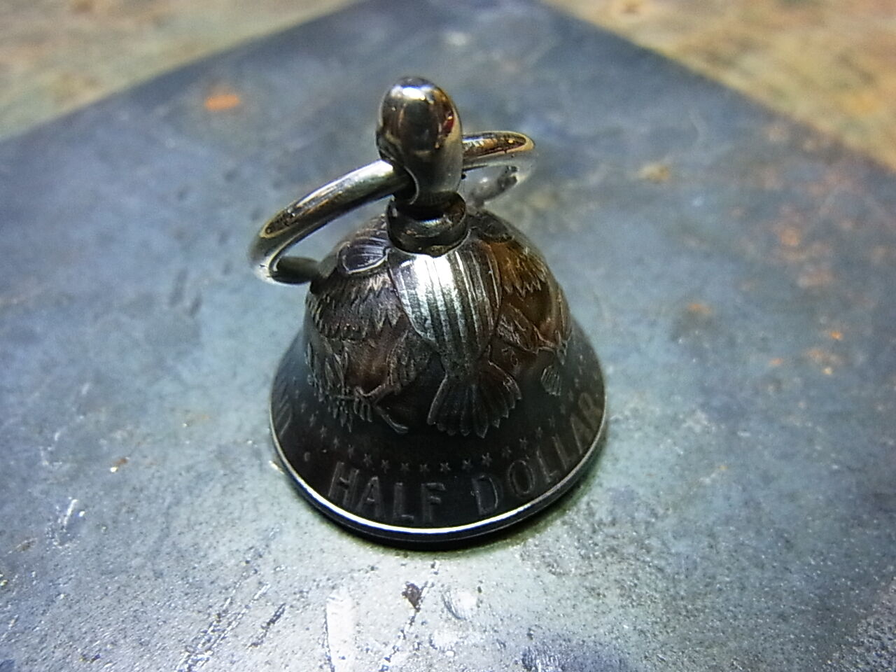 材は、1964年のアメリカのハーフダラーをブッ叩いて、ベル状に形成。