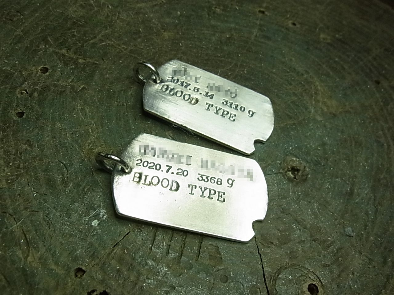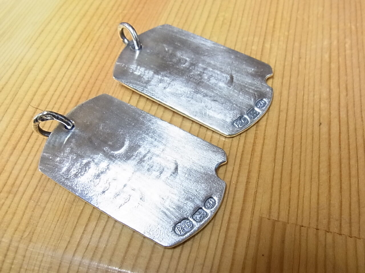 厚めの銀板を使って、一般的な軍の認識票のサイズ感で製作。