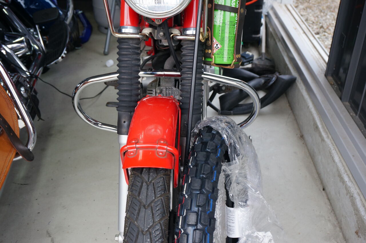 フロントフォークに沿うように取り付けたものが、